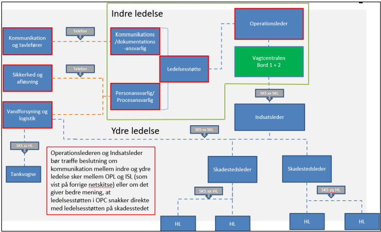 - Ressourcer i organisation som er uddannet til at håndtere følgende ledelsesstøtte-funktioner – typisk indplaceret som en skadesstedslederfunktioner på skadesstedet: